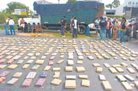 Yerba era. Pero una tonelada y media de marihuana que era transportada en un camión. El cargamento fue secuestrado por la Bonaerense en la localidad de Garín. En el procedimiento fueron detenidas cuatro personas, entre ellas un gendarme que se hallaba sumariado en disponibilidad y se ve que quería completar el medio sueldo. El operativo recibió un título codificado poco original: “Camión Verde”, lo llamaron, y no precisamente por la marihuana sino porque el transporte cargaba, bien disimulada, la tonelada y media de marihuana entre cientos de paquetes de yerba mate. El operativo se llevó a cabo en el peaje de Garín a la altura del kilómetro 33,700 de la Ruta Panamericana. Efectivos de la DDI de Lomas de Zamora interceptaron el paso del camión ocupado sólo por el conductor y de un auto Ford Escort con tres personas, que sospechan que actuaba como apoyo disfrazado de custodia. Al revisar el camión, un Ford 7000 que había partido de Misiones, los uniformados hallaron en la caja 1500 kilos de marihuana oculta debajo de un cargamento de yerba mate embalada en paquetes de un kilo y en bolsas.