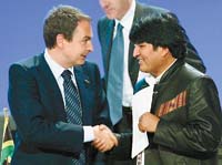 A su llegada a Viena, Evo Morales había pateado el tablero acusando a las empresas Petrobras y Repsol de contrabandistas y de violadoras de las normas de su país. Además, había cargado en forma particular contra Rodríguez Zapatero, a quien dijo no ver como un aliado y le reprochó no haberle cumplido algunas promesas, como la condonación de una deuda que Bolivia mantiene con España. La andana sonó extraña, justo en su primera participación en un gran escenario internacional.