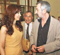 Hacía mucho calor en la residencia del embajador, el aire acondicionado no daba abasto, pero la senadora Cristina Fernández no parecía afectada, conservaba su estampa –pantalón y blusa sin mangas, color tostado y sandalias al tono–, cuando las luces de las cámaras de la televisión se encendieron y encararon hacia la pareja presidencial. “Los va a atender Cristina” se le escuchó decir a Kirchner, y la senadora lo hizo de buen grado. “Nunca he pensado mi vida en términos de escalafón” fue la respuesta a Mónica Gutiérrez cuando le preguntó “si tenía la fantasía de ser Presidenta”, para aclararle, ante la insistencia, que “estoy grande para fantasías, eso era cuando tenía 15 años”. La actitud de la primera dama contrastó con la de su marido, que no tuvo contacto con la prensa. Cristina recomendó La marcha de los pingüinos, “es un excelente documental, es una defensa de la vida”, dijo sonriendo, y respaldó a los gobiernos de la región: “Entender a Bolivia u otros espacios latinoamericanos con categorías del pensamiento europeo no daría resultado. Lo importante es concebir la diversidad”.