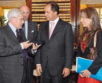 Como parte de la gira, Scioli se reunió con el titular del Senado italiano, Franco Marini, quien lo aduló por la “recuperación social y económica argentina”, y también encabezó la presentación de “Ejercicios de la Memoria”, una muestra que expone los trabajos realizados por la Universidad de Tres de Febrero, donde se aborda la temática de la dictadura y los desaparecidos.