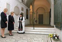 Por la tarde, la octogenaria ex primera ministra inglesa Margaret Thatcher, quien conducía los hilos de la política y de la guerra en aquel entonces, homenajeó a los soldados de su país muertos en el combate del Atlántico Sur. La “dama de hierro”, como la llamaban en su época de gloria, aceptó la invitación de la representante de las Malvinas en Londres, Sukey Cameron, y se presentó en la catedral de San Pablo, en Londres, donde prefirió mostrar un bajo perfil, por lo que en un breve acto colocó una ofrenda floral recordando a los 255 miembros del ejército británico que cayeron bajo el fuego de la defensa argentina, al pie de un monumento inspirado en ellos.