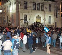 Ni la llovizna de la tarde, ni la amenaza de otras lluvias ni la helada noche de dos grados bajo cero de sensación térmica pudieron evitar que los manifestantes volvieran a salir a las calles de Río Gallegos. Unas cuatro mil personas marcharon por la ciudad para participar en el cacerolazo que el gremio docente lanzó en toda la provincia. El domingo por la tarde había decidido la continuidad de la huelga por cinco días, cuando todavía no había indicios de reanudar negociaciones con el gobierno provincial.