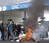 Las playas de la mayoría de las estaciones de GNC estaban repletas de taxis estacionados, cuyos choferes esperaban allí alguna novedad. “La única solución es ir para provincia, lo que pasa es que muchos no se animan porque no conocen esa zona. Pero es una cosa de locos. ¿Cómo van a vender de la General Paz para allá y no de este lado? Yo laburé a nafta y a media máquina”, se quejó Adolfo, que limpiaba la luneta de su utilitario y, misterioso, prefirió no dar su apellido. Cuando la ilusión de buenas noticias se comenzó a disipar por el paso de las horas, varios grupos arrancaron sus autos (con nafta) y los utilizaron para bloquear el tránsito en diversos puntos de la ciudad. Los cortes más grandes se produjeron en Juan de Garay y Entre Ríos, México y Carlos Pellegrini, y Lima y Humberto Primo, esquina en la que se formó un gran embotellamiento entre las 17 y las 19, sobre todo en el acceso a la autopista 25 de Mayo, en dirección hacia el oeste.