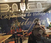 Después de cuatro años de autogestión, el Bauen está trabajando a lleno. Se nota aunque sea sábado a la tarde. Una pareja cruza el hall con look de vacaciones, cámara de video y zapatillas. En las mesas del bar unos venezolanos gritan chévere, y los salones están ocupados por la extraña marca del hotel, siempre un poco bizarro. En el auditorio principal se realiza un campeonato nacional de figuritas, mientras en la sala aledaña veinte o treinta jóvenes discuten sobre las pasantías; son de la Unión de Trabajadores Precarizados. En el piso de arriba hay un encuentro ambientalista. Y carteles que anuncian que a la noche hay programado un show de salsa bien caliente.