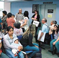 A simple vista, en el Hospital General de Agudos Santojanni los pacientes, porteños o bonaerenses, esperan sin mayores complicaciones en la abarrotada armonía de una madrugada de llovizna. “Esto no es informes”, insiste un cartel prolijamente pegado en todas las ventanillas donde se atiende al público, sobre la calle Leguizamón. Los turnos y los estudios se entregan a partir de las 8, pero la cola empieza dos horas antes. Casi nadie está al tanto de la reciente decisión del nuevo jefe de Gobierno de dar prioridad a los porteños en la atención de los consultorios externos y clínica. Los médicos no quieren opinar o piden que los autorice el director para hacerlo. El director dice que la autorización las da el jefe de prensa del Ministerio de Salud de la Ciudad. El hospital queda a poco más de diez cuadras de la avenida General Paz y del distrito más grande y poblado de la provincia de Buenos Aires: La Matanza. Hay cola hasta en el kiosquito improvisado en una garita al lado de la Guardia.