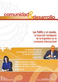 El último número de comunidad&desarrollo incluye, entre otros temas, un artículo del vicecanciller Jorge Taiana sobre la integración regional en América latina como respuesta al reto de la globalización, y otro de la titular del Banco Nación, Felisa Miceli, sobre los créditos para las pequeñas y medianas empresas y su importancia para la recuperación económica. Además, la revista incluye análisis de Arnaldo Bocco, Eduardo Sigal y Hugo Cormik.