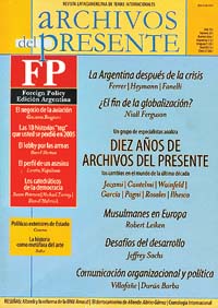 La revista Archivos del presente comenzó a salir hace diez años editada por la Fundación Foro del Sur e impulsada por su director, Aníbal Jozami, se ha ido convirtiendo en una interesante plataforma de debate académico y político: su último número incluye artículos de Niall Ferguson y Aldo Ferrer y un debate entre Marcelo Cantelmi, Mario Wainfeld, Elías García, Carlos Pagni, Jorge Rosales y Marilse Ilhesca. Además, con motivo del décimo aniversario, Archivos del presente incluye un cambio de formato y un agregado sustancial: todas las ediciones incluirán un anexo con artículos tomados de Foreign Policy, la prestigiosa revista norteamericana que fundó Samuel Huntington y hoy dirige Moisés Naim.