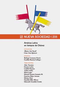 La edición 205 de la revista Nueva Sociedad se titula “América latina en tiempos de Chávez”. Incluye artículos de tres referentes de las ciencias sociales: el francés Alain Touraine, el argentino Ernesto Laclau y el español Ludolfo Paramio. Editada por la Fundación Friedrich Ebert, Nueva Sociedad es una revista de debate académico y político que se publica desde 1972, cada dos meses, y que se distribuye en América latina, Estados Unidos y Europa. La dirigen Joachim Knoop y José Natanson y se puede acceder a la edición on-line en www.nuso.org