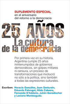 Por primera vez en su historia, Argentina cumple 25 años ininterrumpidos de gobiernos democráticos, sin golpes militares ni censura, un proceso de transformaciones que involucró no sólo a la política, sino también a todas las expresiones culturales.