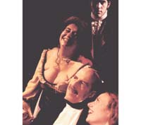 Un cortinado rojizo transparente divide transversalmente el espacio escénico de la pequeña sala Teatro Abierto, opacando con ese artilugio ciertas secuencias. La claridad con que se vean éstas dependerá de la butaca que el espectador ocupe en la platea, sea a uno u otro lado del amplio velo, que –necesario es aclarar– se descorre a veces totalmente, y aun desplegado no impide ver qué cosas suceden. Lo cierto es que ese ardid escenográfico potencia el costado brumoso de una historia que se ubica en otro tiempo y lugar. La pauta de ello viene dada por el vestuario y el título nobiliario del dueño de la comarca en que se encuentra el burdel. Sin embargo, los asuntos que trata la pieza pueden trasladarse al presente. Esa impresión la proporcionan los mismos personajes, que transponen con sus actitudes los límites temporales. Se los ve escurridizos y difíciles de encasillar, incluido el Conde, a quien, por lo que él mismo cuenta, se podría calificar de gozoso proveedor de sentencias de muerte.