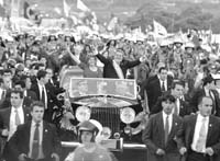 Tras las derrotas presidenciales del ‘89, ‘94 y ‘98, Lula decidió cambiar su estilo sin perder sus ideales políticos. La barba prolija, el traje de buen corte y un discurso moderado suplantaron la crecida barba, la remera roja transpirada y los ataques verbales a sus adversarios. En la campaña contra José Serra, Lula se definió como el “candidato de la paz y el amor”, y sumó a su voz crítica propuestas de gobierno. Estuvo a punto de imponerse en primera vuelta, pero la gloria recién le llegaría el 28 de noviembre, gracias a los casi 53 millones de brasileños que esta vez confiaron en su trayectoria. “La gente –explica Lula en el documental– me decía que la clase media tenía miedo de mí. Pero, ¿qué es la clasemedia? ¿Tener una buena casa, un auto, refrigerador, televisor, ir a la playa los domingos, beberse una cerveza, almorzar en un restaurante con la familia, cenar? Eso es para todos los seres humanos.”