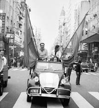 Las dos muestras que se presentarán se vinculan entre sí temática y temporalmente, ya que pertenecen a los primeros años de la década del ‘70. Alfredo Alonso se dedicó a fotografiar sistemáticamente afiches, carteles, pintadas y grafittis de los grupos políticos de esos años, sobre todo de “la nueva izquierda”. Un dato curioso: en muchas de sus fotografías aparece un menor y detrás una pintada. Para disimular que fotografiaba un material estrictamente político, Alonso solía hacer posar a su hijo tipo “retrato” y detrás aparecía la pintada. De esa manera fotografió innumerables graffitis. La otra muestra es de Carlos Pesce, quien fue fotógrafo de la publicación El descamisado, y sus fotografías toman el período 1972-74. Hay material fotográfico con imágenes del 25 de mayo de 1973 –día de la asunción de Cámpora a la presidencia– en los barrios.