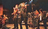 Con música centroeuropea del grupo francés Les Yeaux Noirs, conducido por los violinistas Eric y Olivier Slabiak, e interpretaciones de la banda de Kevin Johansen, el domingo cerró la cuarta edición del Festival Internacional de Teatro, Danza, Música y Artes Visuales de la ciudad, organizado por la Secretaría de Cultura porteña con auspicio de instituciones culturales nacionales y extranjeras. En este encuentro predominaron los espectáculos de pequeño formato y las propuestas vinculadas con el teatro y la danza de exploración. Careció de figuras carismáticas, como la cantante italiana Milva y la actriz alemana Hanna Schygulla que estuvieron en 1997, o Vittorio Gassman, en 1999. Nuevamente se reiteraron los parámetros de la edición 2001, en la que primaron las obras “de búsqueda”. La cifra de concurrencia difundida por los organizadores fue de 100.540 personas, sin incluir la asistencia al espectáculo de cierre, realizado en la calle y frente al Teatro San Martín. Este dato refleja que el interés del público no ha descendido. Sobre este punto sorprendió la fuerte convocatoria de algunas producciones nacionales incorporadas a la programación del FIBA, tanto de obras que ya no figuraban en cartelera como de otras que sí permanecían. No pareció importarle demasiado al aspirante a espectador soportar largas colas para acceder a las salas. El placer de participar y el hecho de que las entradas fueran en su mayoría gratuitas explican en parte ese afán. Dentro del segmento nacional hubo espectáculos pagos, como los de concert–varieté, que reunieron a artistas más populares, conocidos muchos de ellos a través de la TV o de los shows de humor, congregando a un público no adicto al teatro, ni al tradicional ni al de experimentación.