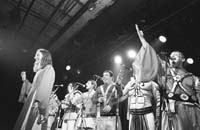 En La Supermurga, el espectáculo gana un nuevo formato sonoro con el grupo instrumental que se suma a la fila de ocho voces, y se abre a un público más amplio que el estrictamente murguero. Con la incorporación de teclados, vientos, guitarras, bajo, más otra línea de percusión además de la tradicional en la murga, las letras de la Falta y los clásicos que suelen interpretar con Jaime Roos como “Brindis por Pierrot” o “Que el letrista no se olvide” se lucen con solos instrumentales como la guitarra de Eduardo Mauris o los impecables vientos de Gastón Ackerman, también arreglador musical del grupo. “Si los músicos de rock o pop siempre utilizaron a la murga como apoyo, nosotros hacemos al revés: nos valemos de los instrumentos para resaltar al coro, que sigue siendo central”, explica Castro. Felipe Castro, hijo de Raúl, solista y encargado de la puesta en escena del espectáculo, fue el principal promotor del “experimento”. “Al principio yo era medio escéptico, no sabía si iba a funcionar, con tanta gente teniendo que ponerse de acuerdo. Pero ahora que nos entusiasmamos, ya no nos paran”, acepta el letrista.