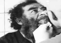 La CNN repite la imagen emblema a toda hora: el tirano caído está sentado en una camilla, y el fondito de azulejos indica el estatuto del lugar: es un pequeño hospital o una salita. El funcionario dice “lo tenemos”, y el apoyo visual recorta la escena del primer encuentro, antes de que lo bañen o lo rasuren, antes de que el bárbaro sea investido de civilidad para reingresar al mundo. Se lo ve, en estado salvaje, desde el domingo, en fragmentos y en especiales: la cámara se posa en un rincón, cierra el plano, no deja ver más que una cabeza. Es el rostro del monstruo, dañado, barbudo. El acercamiento resalta la mugre de los días en el pozo. De espaldas, se observa al médico, o el paramédico (no se aclara) que es su opuesto perfecto. Si Saddam Hussein es pura pelambre entrecana y sucia, el médico está completamente pelado. Es la escena del rescate sanitario, el encuentro entre el bárbaro y su redentor, el relato más legítimo para una captura.