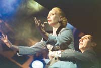 Eleonora Cassano compone una Evita mutante que va creciendo en intensidad dramática y en soltura. Al principio, la bailarina apuntala la indefensión y la soledad de su criatura: todas las puertas se cierran cuando ella busca abrirse paso como actriz. El rencor, el resentimiento y la impotencia se traducen en un dolor contenido que no pasa inadvertido desde lo coreográfico. Vladimivsky añade a la danza contemporánea aires de tango y vals, además de brazos y piernas que se estiran, que luchan y pugnan por acomodarse en un espacio. Los movimientos de Cassano, que acaso reprimen la angustia de los sueños que se diluyen, están siempre detrás del ritmo vertiginoso de un conglomerado urbano repulsivo. Perón representa para Evita (una hija no reconocida) un padre que al asumir su “paternidad” –al darle el apellido– la legitima como mujer, según insinúa la puesta, sin concretarlo con convicción desde lo actoral, rubro en donde emergen muchas disparidades que la directora no supo equilibrar.