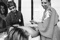Las geishas Vero y Lidia ofrecen un masaje combinado para relajar, otro con piedras volcánicas, uno más con esferas, y al del rincón le dicen que le están “equilibrando la energía sin que se dé cuenta”. El bienestar, después, es inmediato. Para poder existir, la Casa Infinito deberá siempre anunciar un declive (“Estás estresado”) y decretar el nacimiento de un tiempo mejor. Luego diagnostica el mal (“Cuidá la dieta”) y el resto se consigue en el store: libro de Feng Shui, flores de Bach, línea de tés para armonizar (con jengibre, canela y pétalos de rosas) y hasta un delivery de carta natal. Entre la oferta de cursitos, a cien pesos por mes, el Tantra Club convoca a solos y solas o a parejas a “aumentar el placer”. “Llaman babosos –confiesa Sandra Stuberj, psicóloga y dueña de casa–, pero esto nada que ver; a esto lo dictan psicólogos.” Una relajación dará paso al momento caliente de “técnicas y posturas”, pero no lo dejan ver. En otra aula, el contacto angélico conduce a otras zonas: experiencia con sonaja para localizar el ángel propio y el alma gemela, en vivo, junto a las estrellas del canal. Fabio Zerpa propone una regresión “a dos vidas pasadas”, con análisis grupal de los hechos vividos y hasta un plus por el mismo precio: experiencia con Icaro (un angelito muy especial).