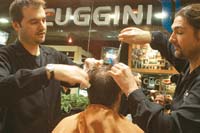 Son primos, como lo indica en italiano el nombre de su peluquería. Atienden a actores, deportistas y empresarios.