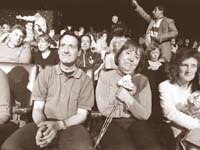 Con el paso de las horas, se nota que estar en “la boîte” es un sacrificio. Esa elite no puede ir al baño: se quedan clavados en sus sillas, algo rígidos por los nervios, transpiran y se les corre el maquillaje y –de pronto– tienen que retroceder porque empieza “la coreo” del Día de la Primavera. Todo rapidísimo, porque si no se mueven van a quedar sepultados debajo de una montaña de papelitos. Durante “la coreo”, el bailarín Raúl Martorells, un histórico de los programas ómnibus, explica que lo más difícil es reconstruir el movimiento de los ‘50 y ‘60, “que va a otra velocidad, más lento, más pausado”. Los chicos del ballet, todos con reflejos, jopos y brillantina, juegan de locales, con muchos años de TV. “Es re loco –dice Ezequiel Ramos, de 25–. Mi viejo bailaba con Johnny Allon y yo repito la historia.” Los bailes exaltan esa eterna primavera de los ‘60 que, en la tribuna, genera devoción. Cambia el tema de conversación: si hasta aquí todas pensaban en el día en que lo conocieron a él, ahora retroceden al picnic en el que ficharon a uno anterior. A los maridos no les gusta tanta competencia, y empiezan a meterse un poco más: “¿Pero esto para dónde es?”, dice Roberto, al lado de Vilma. Las señoras los hacen callar. “Después de aquel picnic –sigue Sarita, de Paternal–, solamente pensaba en volver a verlo. Y nada. Yo esperaba el llamado, pero nunca llegó. Fue como ese tema, ¿te acordás?, ese que decía: ‘El teléfono llora’.”