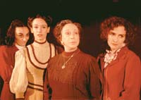 El director acciona así un contrapunto entre ese exterior festivo y el interior de una casa de familia donde se adora “figurar”, aunque se esté sumergido en la ruina económica. Doña María, viuda del capitán Barranco, “guerrero de la lucha por la independencia”, recibe una pensión mínima, pero simula arreglárselas para no perder status. No es una señora dispuesta al cambio. Que haya mujeres que se organicen o intervengan en política le parece tarea de “marimacho”. Este personaje, admirablemente interpretado por Alicia Berdaxagar, no pretende alterar el orden constituido, sí en cambio servirse de sus hijas, sobre todo de la fina y agraciada Carmen. Su propósito es que engatusen con sonrisitas y cumplidos a los pretendientes (todos de Carmen), esperando que éstos alivien con favores el rigor de la miseria que se cierne sobre ella y las jóvenes Carmen (Paula Canals), Manuela (Verónica Piaggio) y Pepa.