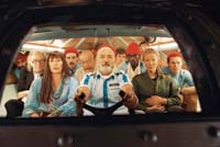 Como en esos dos films (el primero de Anderson, Bottle Rocket, nunca llegó a la Argentina), Vida acuática está poblado por una fascinante familia sustituta, un poco más que levemente excéntrica y, en este caso, presidida por ese patriarca en decadencia que es Zissou. Suerte de versión paródica –si eso es aún posible– de Cousteau, Zi- ssou ha hecho de su pasión por el mar un proyecto mediático, que en su momento alcanzó para levantar todo un pequeño imperio, pero que para cuando comienza el film está en pleno ocaso. Su barco, el “Belafonte” (llamado así quizá porque el bueno de Harry era el rey del “Calipso”, a su vez el nombre del célebre barco de Cousteau) tiene la nobleza de los viejos tiempos, pero ya no cuenta con los recursos tecnológicos que serían necesarios para la tarea que el propio Zissou se ha encomendado. Su tripulación, proveniente de todos los rincones del mundo, está siempre al borde del motín, empezando por su esposa (Anjelica Huston) que, harta de los desvaríos de Zissou, prefiere entregarse a los brazos de su pragmático archienemigo, otro divo del submarinismo fílmico-televisivo (Jeff Goldblum), pero en pleno apogeo de su estrellato y beneficiario de todos los subsidios de fundaciones e institutos oceanográficos.