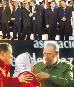 Chávez había hecho reír a Lula durante su exposición, en el pleno de presidentes de la Cumbre cuando hizo referencias históricas sobre Brasil. El brasileño lo miraba con gesto cansado y Chávez lo hizo reír con una broma. Después llegó la venganza de Lula, cuando cerró la reunión tras asumir como nuevo presidente pro témpore del Mercosur. Unos momentos antes había recibido un martillo de madera y su base, los atributos del cargo, de manos de Kirchner. “Prometo usarlo de ahora en adelante –dijo, mostrando el martillito– para controlar el tiempo de exposición de Hugo y que se porte bien.”