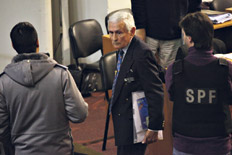 “Documentos por favor”, escuchó Rubén cuando atendió el portero. Y bajó. Cuando mi psicoanalista abre me toma del brazo que tenía libre, ya que el otro lo tenía agarrado por el uniformado... y comienza a tironear de mi brazo hacia adentro... con la puerta entreabierta... así... como jugando a tirar de la cuerda... Por suerte mi psicoanalista, además de ser hincha de Chaca, es bastante corpulento, y logró meterme adentro y cerrar la puerta, aunque con el policía adentro. El cana se metió al hall del edificio y quería llevarme preso por amenazas y resistencia a la autoridad. Cómo explicar que Rubén casi lo saca de una oreja... lo fue pecheando, abrió la puerta y lo sacó. Mi psicoanalista se amparó en el secreto profesional para no revelar mis datos. Pero tuvo que darle los suyos al cana. Y el monstruo Miguel Etchecolatz le dijo que le iba a iniciar juicio por amenazas. El mundo al revés.