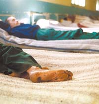 Quienes no están encerrados en celdas de aislamiento, están ubicados en celdas comunes con capacidad para seis adultos. Sin embargo, lo que observamos es que en cada una de estas celdas permanecen detenidas entre siete y once personas. Constatamos que muchos internos se ven obligados a dormir sobre restos de colchones delgados y sucios en el suelo, ubicados uno tras otro, casi sin espacio entre ellos para moverse. Cada celda cuenta con una letrina sin puertas para el total de las personas allí alojadas. Uno de estos pabellones ni siquiera contaba con la mencionada letrina y las personas internadas –al igual que en las celdas de aislamiento– debían usar botellas como sanitarios.