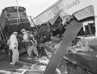 SOCIEDAD › UN MICRO CRUZó UNA BARRERA BAJA EN DOLORES. UN TREN LO EMBISTIó. MURIERON 17 PASAJEROS