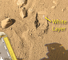 La sonda estadounidense Phoenix, que se posó en el Polo Norte de Marte el 25 de mayo pasado, recogió su primera muestra de suelo marciano. Son unos 200 mililitros que comprenden un trozo de tierra recubierto de una costra blanca, que es objeto de debate entre el equipo de científicos de la NASA. Algunos defienden la hipótesis de que se trata de hielo en tanto otros creen que sería sal que quedó tras la evaporación del agua. “Es realmente una ocasión importante para nosotros, por primera vez podemos analizar suelo del Polo Norte marciano, que nos dirá las proporciones de agua y de minerales”, dijo Peter Smith, el científico principal de la misión Phoenix.