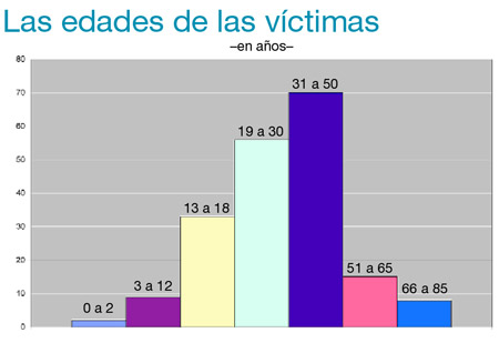 La mayor cantidad de víctimas tenían entre 31 y 50 años, pero también hay niñas de 2, 3, 6, 7, 8 y 13 y adolescentes de 14, 15, y 16 años. Y una mujer de 82.