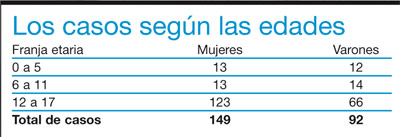 Entre los casos analizados, la mayor cantidad de denuncias por búsqueda de paradero corresponde a niñas y adolescentes mujeres; en total 149 (62 por ciento) sobre un total de 241, mientras que los varones son 92 (38 por ciento). La gran mayoría de las chicas pertenecen a la franja etaria de 12 a 17 años: 123 casos.