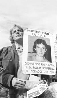 “Cuando desapareció Miguel todavía la gente común creía en eso de ‘que en algo habrá andado’; todavía no había pasado lo de Cabezas; todavía la Bonaerense no era la Maldita Policía; y todavía los jueces eran personajes intachables”, dice Rosa Schönfeld. Pasaron exactamente diez años de la desaparición de su hijo Miguel Bru, estudiante de periodismo ilegalmente detenido por policías de la 9ª de La Plata, muerto tras las torturas recibidas y cuyo cuerpo jamás apareció. Hoy, dos policías cumplen cadena perpetua. Hoy ya se sabe que la Bonaerense es el aparato de corrupción y violencia más especializado del país. Y de ese saber no es ajena la brecha abierta por Rosa y por un grupo de amigos de Miguel. Hace un año conformaron la Asociación Miguel Bru para asesorar en casos de violencia policial. Hoy, con una abigarrada base de datos sobre denuncias, patrocinios y asesoramientos gratuitos, la Asociación convoca a una vigilia frente a la puerta de la 9ª. Como todos los años, como cada 17 de agosto, a las 19, a la misma hora en que Miguel entró en la maldita 9ª para no aparecer jamás.