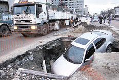 Un automóvil con tres personas a bordo cayó ayer, a la madrugada, en un pozo, en el barrio de Piñeyro de la localidad bonaerense de Avellaneda, y sus ocupantes resultaron ilesos. El hecho ocurrió apenas pasada la medianoche, cuando un Volkswagen Bora cayó dentro de un enorme pozo, en la avenida Hipólito Yrigoyen al 500, a metros de la estación de Avellaneda. El pozo habría sido realizado por una cuadrilla de obras.