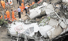 Cinco residentes de la aldea de Huxi, en las islas Pescadores, donde ocurrió el siniestro, resultaron también heridos al estrellarse el avión, que dañó once edificios en su caída. Además, dos niños se encuentran desaparecidos, por lo que la policía teme que se encuentren entre los restos del aparato siniestrado.