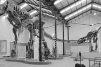 El esqueleto de casi media cuadra de largo ocupa, en el Museo Carmen Funes de Plaza Huincul –provincia de Neuquén–, la sala principal, que abarca el espacio íntegro de lo que fue una cancha de básquetbol. El animal está en la que fue su posición habitual, cuadrúpeda, y su cuello larguísimo no está vuelto hacia arriba –como en erróneas imágenes tradicionales– sino algo caído: “Esta posición facilitaba que el corazón pudiera bombear la sangre hasta la cabeza”, explicó el paleontólogo Rodolfo Coria, director del museo. El Argentinosaurus pesaba unas cien toneladas (un elefante pesa cinco). “Sin embargo, era relativamente liviano para su tamaño: sus vértebras eran huecas”. Y era herbívoro; “Comía varias toneladas por día”. Se estima que vivía más de cien años. Estos dinosaurios eran gregarios, andaban en manada; sólo tenían enemigos naturales cuando eran muy pequeños o muy viejos: entonces podían ser presa de carnívoros como el Gigantosaurio, de 13 metros de largo, que también es huésped del Museo de Plaza Huincul.
