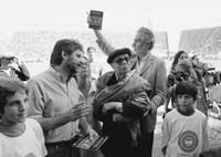 “Gracias por estar acá, maestro”, le dijo el Beto Acosta a don Ernesto Sabato. Un abrazo unió al goleador de San Lorenzo con el autor de Sobre héroes y tumbas y fue todo un símbolo para el lanzamiento de la campaña “Cuando leés, ganás siempre”, impulsada por el Ministerio de Educación de la Nación, que consiste en repartir libros de cuentos entre los asistentes a los partidos de Primera División. Hubo ejemplares en todas las canchas, pero el puntapié inicial se dio ayer en la cancha de San Lorenzo, donde el local jugó con Quilmes. En esta ocasión fue el turno de “El penal más largo del mundo”, de Osvaldo Soriano, un fanático de los “cuervos”. El lanzamiento contó con la presencia del ministro Daniel Filmus y de Sabato, quien pese simpatizar con Estudiantes de La Plata recibió una ovación por parte de las dos hinchadas.