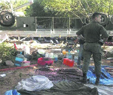 Al llegar al puente sobre del río Seco, uno de los micros –en el que viajaban 50 efectivos– reventó el neumático derecho delantero, el conductor perdió el control del volante y el ómnibus cayó al lecho del río, desde unos 18 metros de altura, luego de lo cual quedó desplomado con las ruedas hacia arriba.