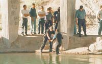 Según anunció anoche una fuente de la Unidad Regional 2ª de la policía de Río Negro, “en el curso de los permanentes rastrillajes que se efectuaban desde el día del hecho, a las 18, efectivos de esta unidad advirtieron, bajo un puente en la ruta provincial 6, en un canal principal de riego, elementos similares a los descriptos como robados”. El lugar, a seis kilómetros de General Roca, fue vallado e intervinieron buzos policiales, que trabajaron hasta el anochecer, es decir, en esa latitud y esta época del año, las 21 horas.