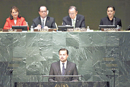 También presente en el plenario, el actor Leonardo DiCaprio afirmó que “llegó la hora de un acción audaz y sin precedentes” para promover las energías renovables. “Nuestro planeta no podrá ser salvado si no abandonamos las energías fósiles”, señaló DiCaprio durante un discurso pronunciado ante el pleno durante el encuentro.