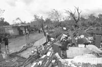 El temporal de agua, vientos de hasta 200 kilómetros por hora y granizo no diferenció clase social: destruyó gran cantidad de viviendas y en villas de emergencia en barrios residenciales, como San Roque, donde hubo dos muertos a causa del derrumbe de dos casas. Emergencia Civil de la Municipalidad de Córdoba definió el temporal como “un tornado con rumbo errático”, que entró en la región por el noroeste y salió hacia el este, por la zona rural de Montecristo. Los barrios más afectados fueron Ameghino norte, el residencial San Roque, Los Ganados, el de la Escuela de Suboficiales de Aeronáutica y los barrios humildes de La Tela, Unión y Rogelio.
