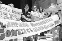 “Basta de violencia sexual, religiosa y económica. Tenemos derechos”, decía otro de los carteles sostenido, entre otras, por Elsa Schvarezman, del Foro por los Derechos Reproductivos, quien consideró que “los médicos del hospital de Bahía Blanca incurrieron en la figura de ‘abandono de persona’ al no darle curso al dictamen de la Comisión de Bioética hospitalaria”. Cristina Gabelloni, de Mujeres de Socialismo Libertario, apuntó: “El patriarcado está instalado en el sistema judicial y junto con el Estado impiden el derecho a decidir sobre el propio cuerpo”.
