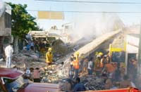 Catorce unidades de bomberos lucharon contra el fuego y alrededor de un centenar de policías, médicos, integrantes de Defensa Civil y voluntarios intentaban hallar sobrevivientes, mientras cuatro palas mecánicas removían cuidadosamente los escombros. Las autoridades cortaron la luz en dos manzanas a la redonda. Por la noche, iluminados con equipos electrógenos, con el silencio y la oscuridad flotando sobre el polvo y los perros husmeando en busca de sobrevivientes, la imagen era una más de tantas escenas de guerra.