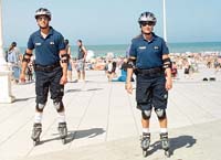 Además de la eficacia para prevenir delitos, los policías marplatenses también deberán demostrar destreza. Y no precisamente para correr a los delincuentes sino para patrullar en patines. Los primeros seis “poliroller”, como se los denomina popularmente, ya están listos para cuidar las calles de la ciudad balnearia, luego de un entrenamiento con la campeona mundial de patín Nora Vega. Las prácticas continuarán para aprender, por ejemplo, a subir y bajar escaleras o cordones. Los efectivos fueron presentados ayer en la Rambla marplatense, con un uniforme sport, acorde con la actividad. Se trata de Alejandro Bonaccio, Gabriela Gervasio, Ariel Ojeda, Ariel Contreras, Gastón Fernández y Néstor Del Valle.