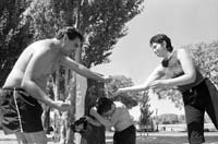 Buenos Aires vivió ayer el día más caluroso del verano. La sensación térmica llegó a 37 grados y obligó a la gente a refugiarse en lugares atípicos. Sandra y sus cinco hermanitos coparon desde temprano la fuente de la plaza del Congreso. No muy lejos, Mario decidió no compartir con nadie la pequeña fuente de Perú e Hipólito Yrigoyen, que se convirtió en su “pileta de agua calentita”. Las ventas de helados, botellas de agua mineral y de gaseosas frescas estuvieron a la orden del día. Para otros, el aire acondicionado de los shoppings se convirtió en paliativo para el intenso calor: durante el mediodía tres mil personas por hora ingresaron a Galerías Pacífico. Según el Servicio Meteorológico Nacional, el fenómeno persistirá hasta el jueves en el área metropolitana. En cambio, en la costa atlántica a partir de hoy habrá lluvias y tormentas aisladas.
