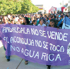 La localidad catamarqueña de Andalgalá conoce de megaminería hace veinte años, desde que se instaló el primer proyecto en Argentina (llamado Bajo la Alumbrera). Desde hace más de quince años que la comunidad denuncia las falsas promesas y rechaza nuevos proyectos. El Concejo Deliberante, por impulso de los vecinos, acaba de dar un golpe impensado: prohibió la megaminería y cerró el pasó al proyecto Agua Rica (tres veces más grande que Alumbrera). “Es un logro de la lucha de la comunidad. En materia ambiental los pueblos tienen autodeterminación frente a gobiernos provinciales y nacionales, y Andalgalá ya dijo no a la megaminería”, afirmó Rosario Carranza, de la Asamblea El Algarrobo.