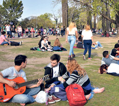 Adolescentes, jóvenes y familias colmaron parques y plazas porteñas para festejar el Día de la Primavera, en una jornada de temperaturas agradables en las que, además de actividades deportivas, artísticas y culturales programadas, hubo paseos públicos sometidos a un operativo de seguridad que controló la ingesta de bebidas alcohólicas. Además de los clásicos encuentros en Palermo, porteñas y porteños de toda las edades celebraron bajo el sol en Plaza Francia, Plaza San Martín y el Parque Indoamericano, en el sur de la Ciudad.