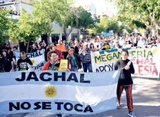 El domingo a las 6 de la mañana, los asambleístas comenzaron a recorrer los 156 kilómetros que separan a Jáchal de la capital sanjuanina. Con un sistema de postas, hombres, mujeres y algunos niños, fueron avanzando hacia la ciudad, con banderas y pancartas con consignas en contra de la minería. A las nueve de la mañana de ayer llegaron a la ciudad de San Juan para hacer entrega del petitorio. Antes de dirigirse a la Legislatura y a la casa de Gobierno, la manifestación pasó por el edificio de la Corte de Justicia para repudiar al juez Oritja por su actuación. “Para ellos el oro vale más que la vida y para nosotros el agua vale más que el oro”, dijo uno de los manifestantes.