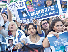 Los carteles y pancartas, levantados frente al escenario que le daba la espalda al palacio legislativo, las pancartas y banderas expresaban lo suyo: “La sangre de nuestros hijos víctimas inocentes no será derramada en vano” o “Penas de cumplimiento efectivo para los accidentes de tránsito con víctimas fatales”. Los reclamos recorrían todos los caminos y perfiles de la tragedia. Entre los asistentes había familiares de policías “asesinados en cumplimiento de su deber”.
