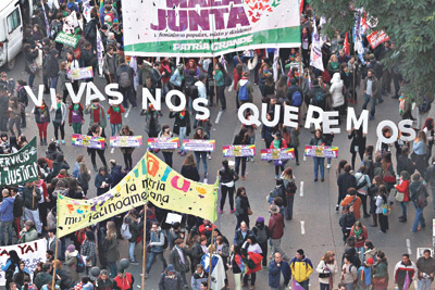 Vivas nos queremos, esa es la consigna con que el colectivo Ni Una Menos convocó al paro. Foto: Leandro TeysseireCon una convocatoria que crece momento a momento y a la que se sumaron las dos CTA y la CGT, mañana se realizará por primera vez en la historia argentina, un paro nacional de mujeres contra los femicidios y en demanda de políticas públicas integrales que contemplen la prevención, sanción y lucha contra la violencia de género, y que garanticen la autonomía económica de las mujeres, sin la cual, muchas víctimas quedan entrampadas en relaciones de pareja atravesadas por maltrato y golpes.